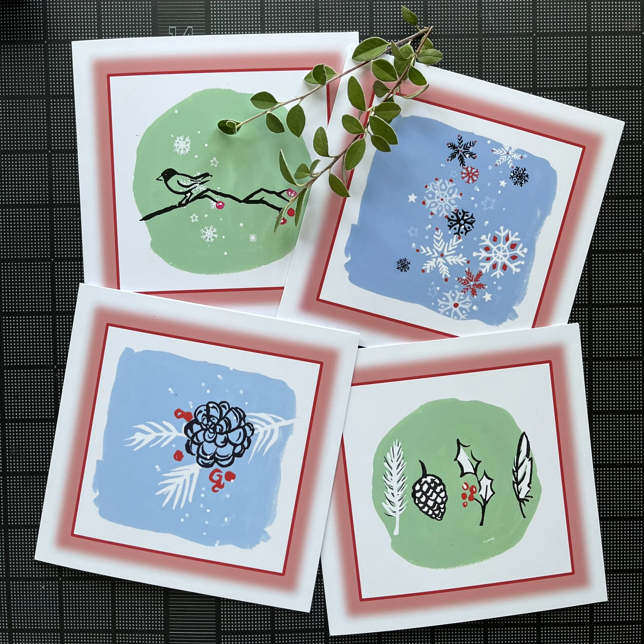 I print all my greeting cards at home per order. If you’d like a 6-pack featuring a sampling of all of the below, please click on the “Christmas Variety Packs” .